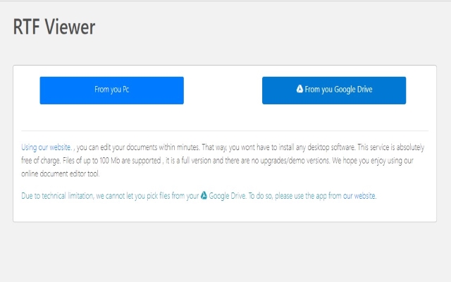 You can edit your documents within minutes. That way, you wont have to install any desktop software. This service is absolutely free of charge. Files of up to 100 Mb are supported , it is a full version and there are no upgrades/demo versions. We hope you enjoy using our online document editor tool.